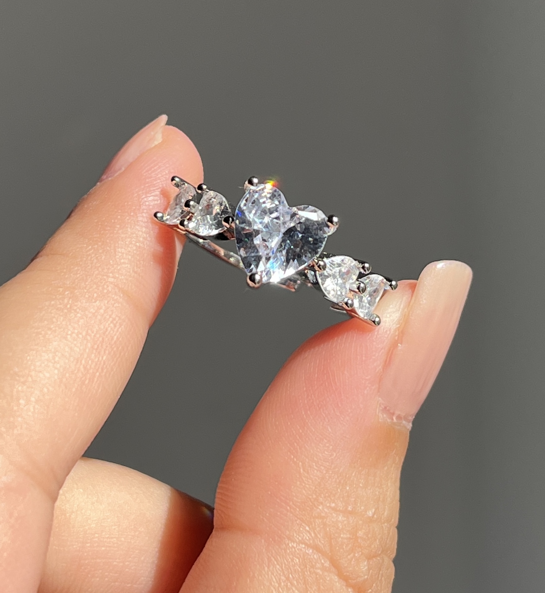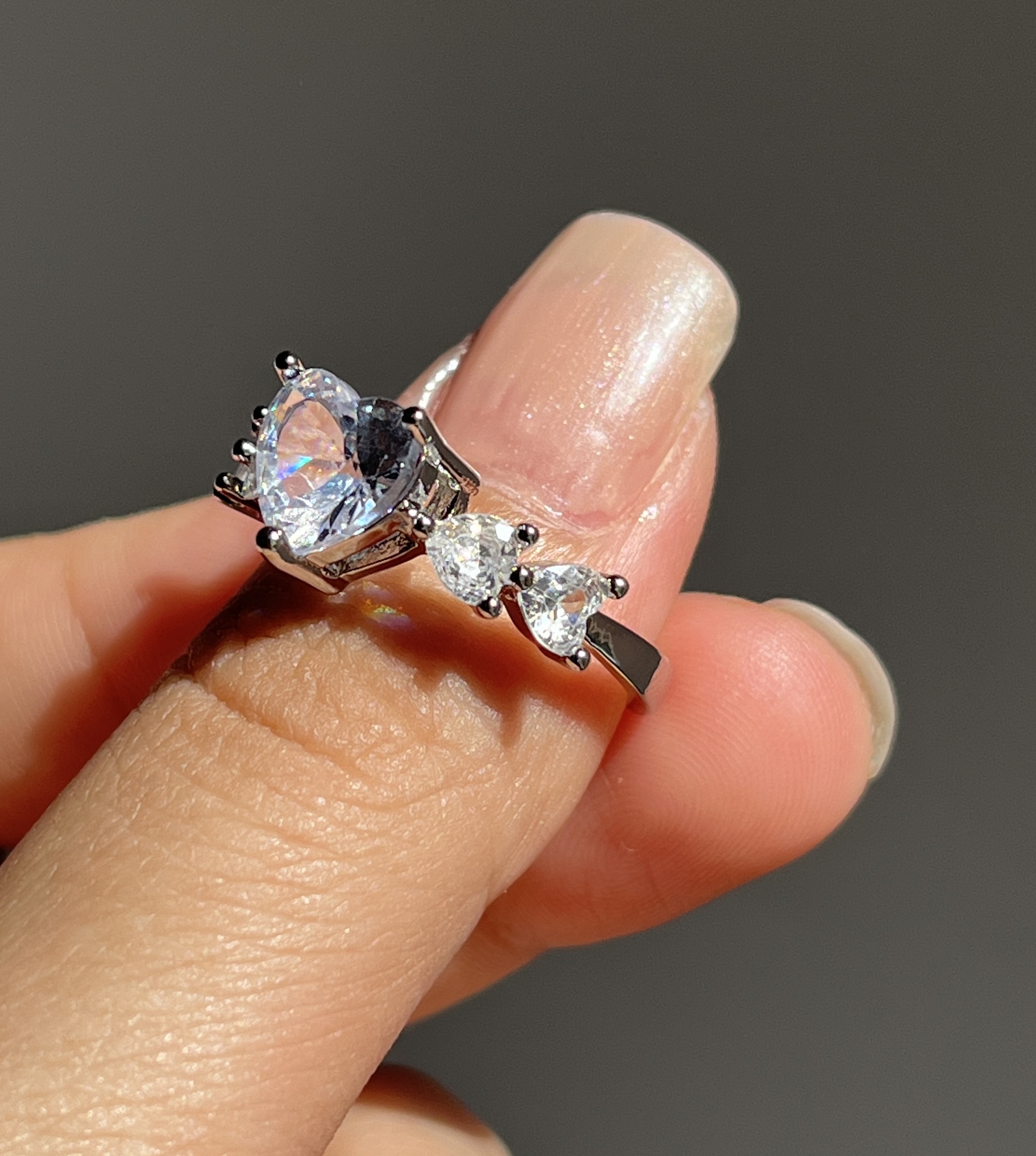 ✔️ انگشتر جواهری قلب ✔️رنگ ثابت ✔️فری سایز ✔️ظریف و خاص ✔️کیفیت عالی ✔️نگین ها مخراج شده وریزش نداره ❌نیاز به مراقبت جزئی